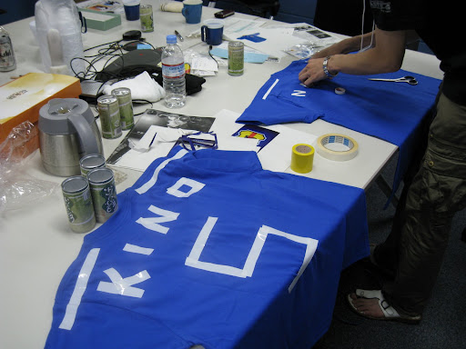 Suzaku team-ek is. Gondoltam, hogy ezekután nem lesz nehéz elrendezni a dolgokat. Mekkorát tévedtem. Először is kiderült, hogy a szomszédos csoporttal (csoportokkal) nem volt megbeszélve, hogy mi hogy lesz, és ők sem beszéltek a mellettük lévő társasággal, úgyhogy volt olyan kis terület, amit háromszor húztak odébb, raktak össze újra. Nekem az volt az érzésem, hogy a mi társaságunk csak várt és várt és semmi az égadta világon nem történt legalább háromnegyed óráig, néha idehúztunk három poszter állványt néha oda. Pedig azért volt pár apróság amit vidáman meg lehetett volna csinálni: egy egyszerű kis papírlapot, amin a csoport neve volt, húsz percig tartott, mire eldöntötték hova is tűzzék fel. Az illető feltűző ember minimum négy taggal beszélt, akik az ötödikhez irányították, mondván, hogy ők mégsem szeretnének ilyen nagy formátumú kérdésben dönteni.
