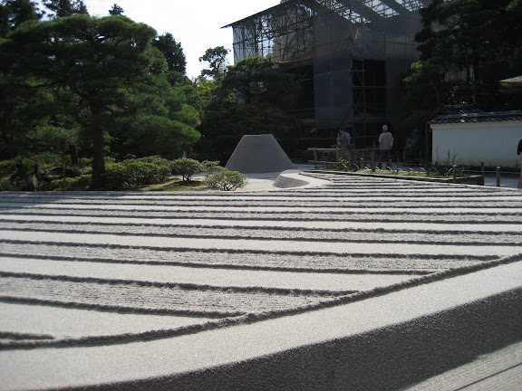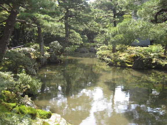 A reggeli a vacsorához hasonlóan több fogásból állt és nagyrészt felismerhetetlen volt. De megint sikerült teleennünk magunkat. Úgy döntöttünk, mivel Kiotóban úgyis kimaradt jó pár nevezetesség, inkább ott nézünk körül. Felkerestünk az arany pagodát és az ezüst pagodát. Ez utóbbi utolsó ottjártam óta sem sikerült felújítani, úgyhogy még mindig teljesen be volt állványozva. De a kert még mindig gyönyörű volt.
