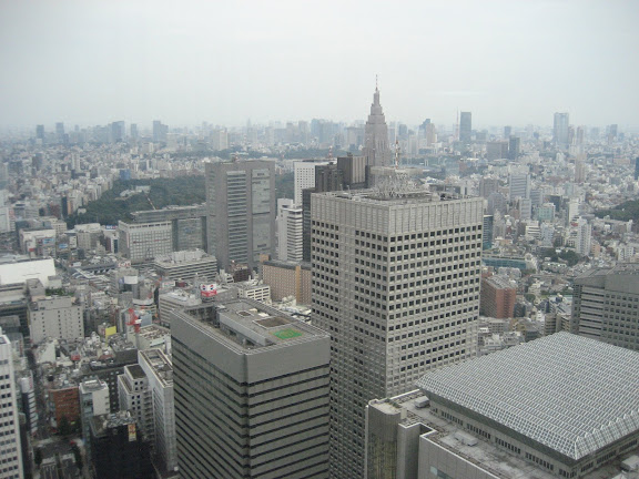 Először a nyugati oldalra mentünk, ott is a Metropolitan Government Building-be, gyönyörködni a kilátásban. Sajnos elég szürke idő volt, de a felhőkarcoló negyed így is lenyűgöző látvány. Igaz az épületek nem azok a modern, kecses épületek, mint amit az ember elképzel, de Japánban elég egyedi stílus alakulhatott ki a földrengések miatt. No meg az utóbbi évek recessziója miatt, gondolom nem is építettek mostanában újakat.